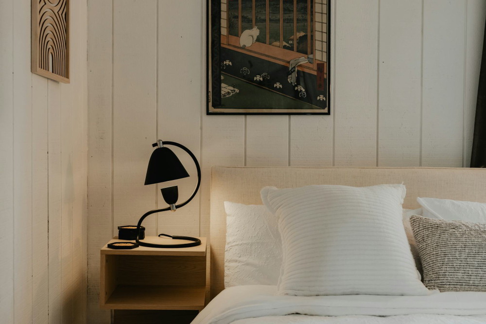 - Papirskærme – inspireret af japansk design – spreder lyset jævnt og giver en næsten svævende fornemmelse i rummet.